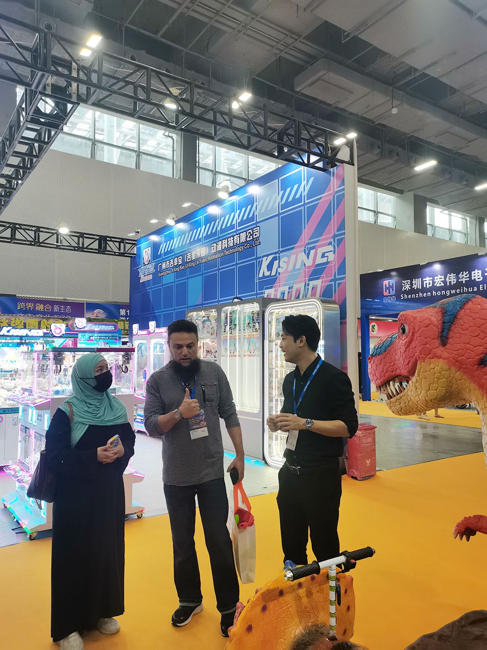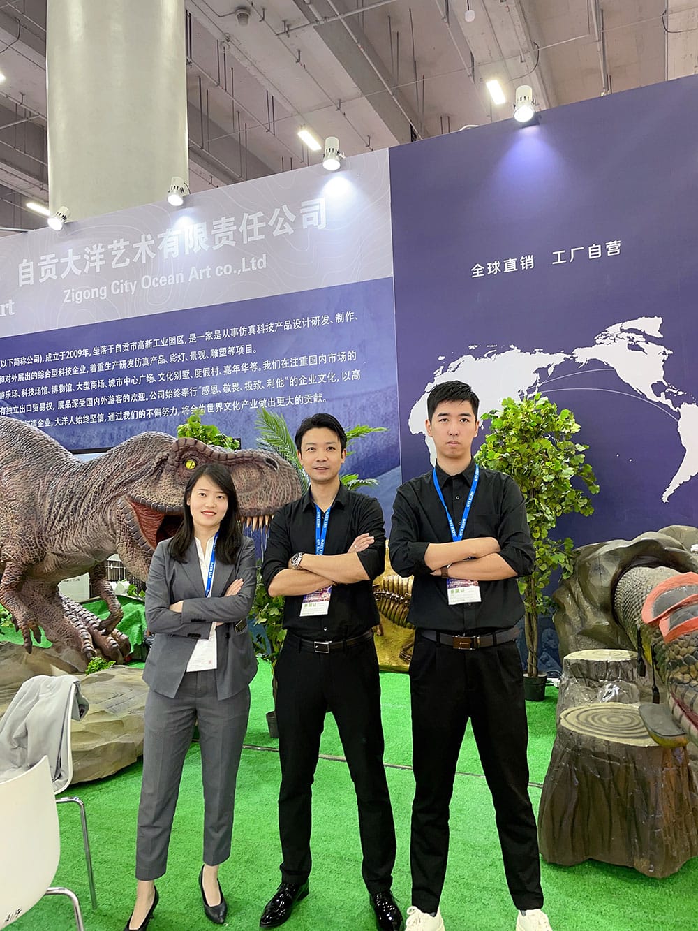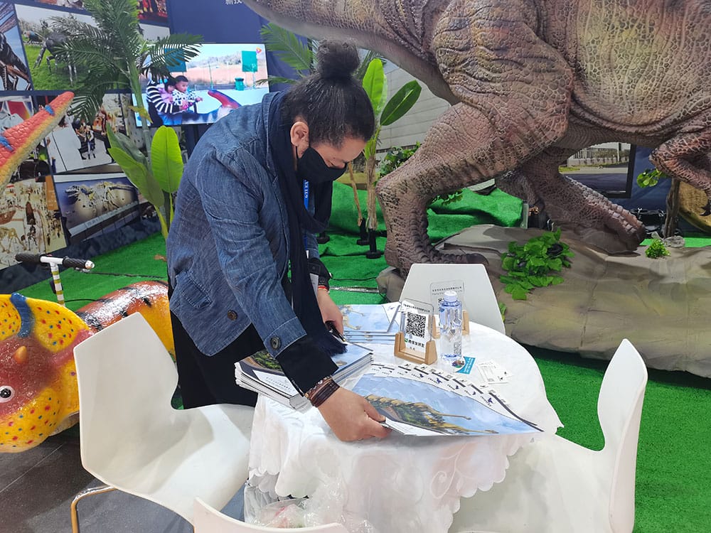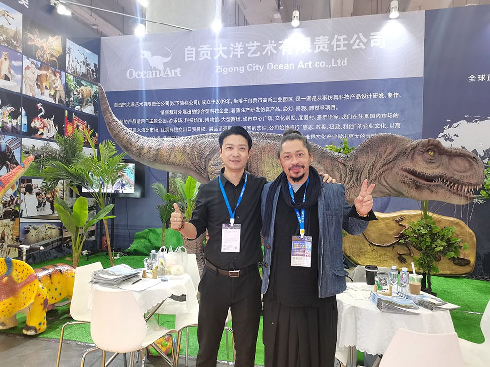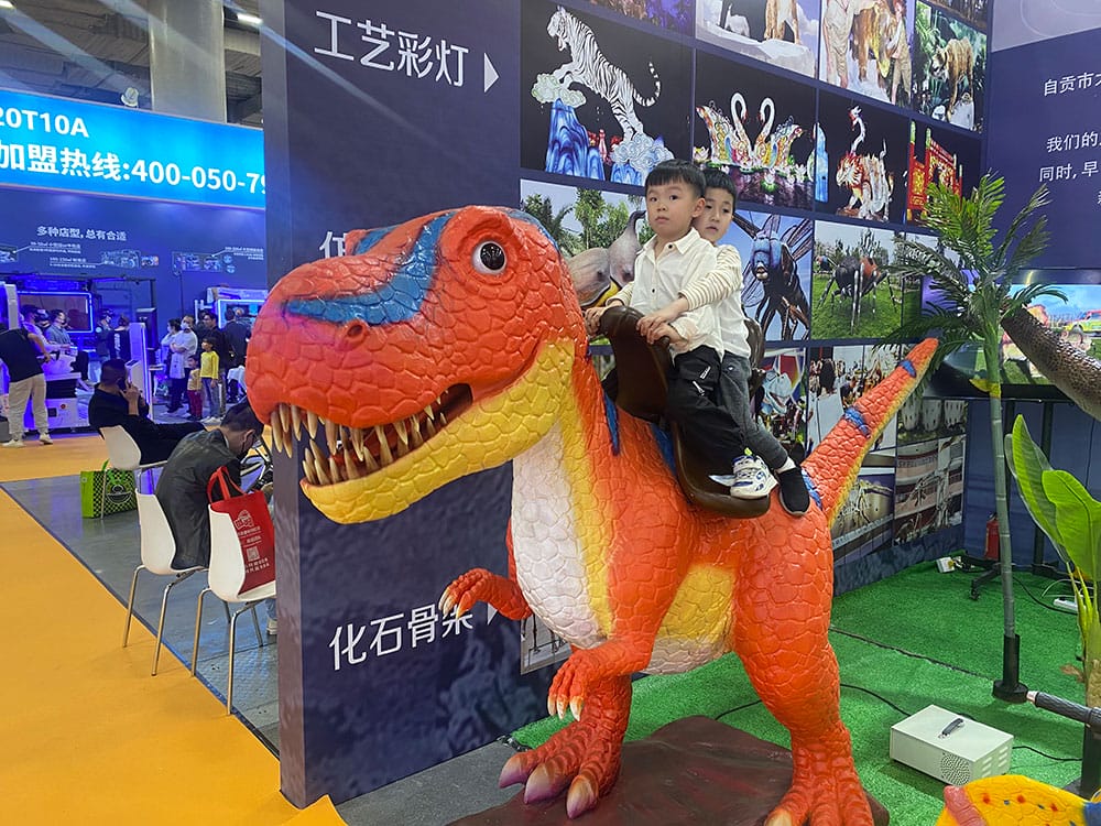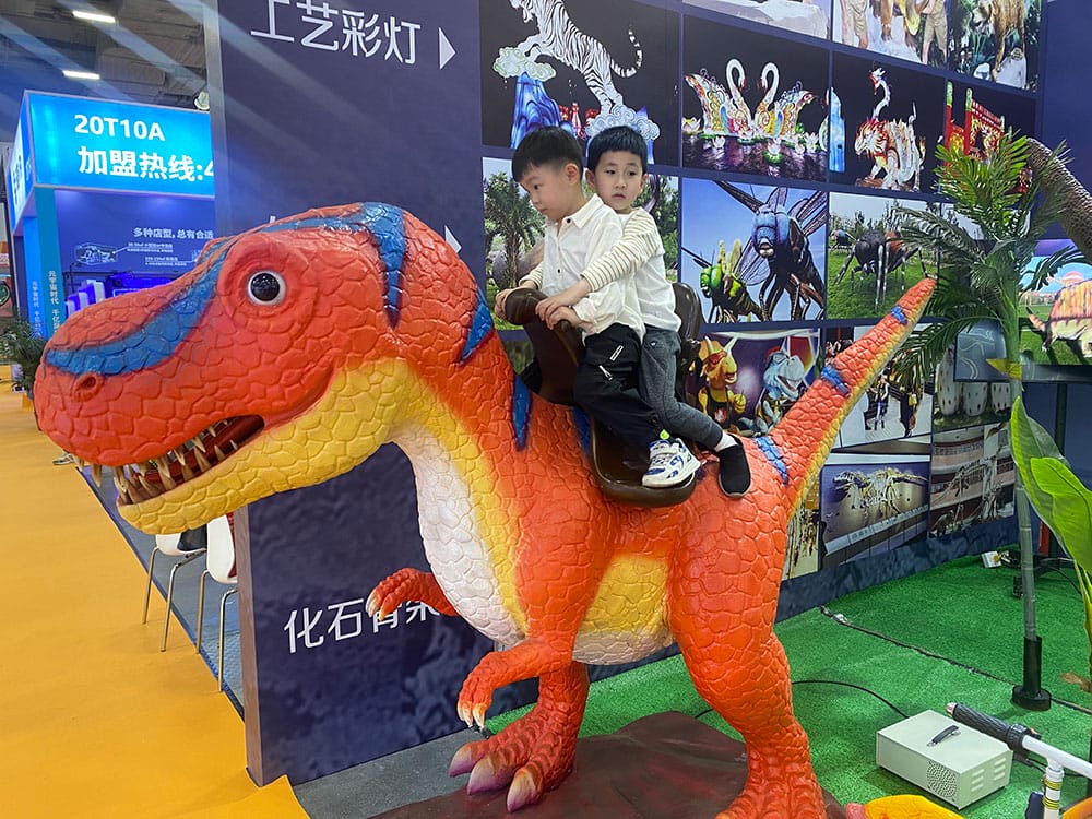 这是疫情竣事后, ,,, ,我司加入的第一场展会, ,,, ,这也是我们第四次加入广州游乐装备展, ,,, ,此次展会我们展示了自贡仿真恐龙模子制作的高水准, ,,, ,仿真霸王龙和仿真蟒蛇坐骑受到了参展用户的好评与喜欢。。。。。 。