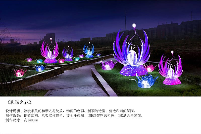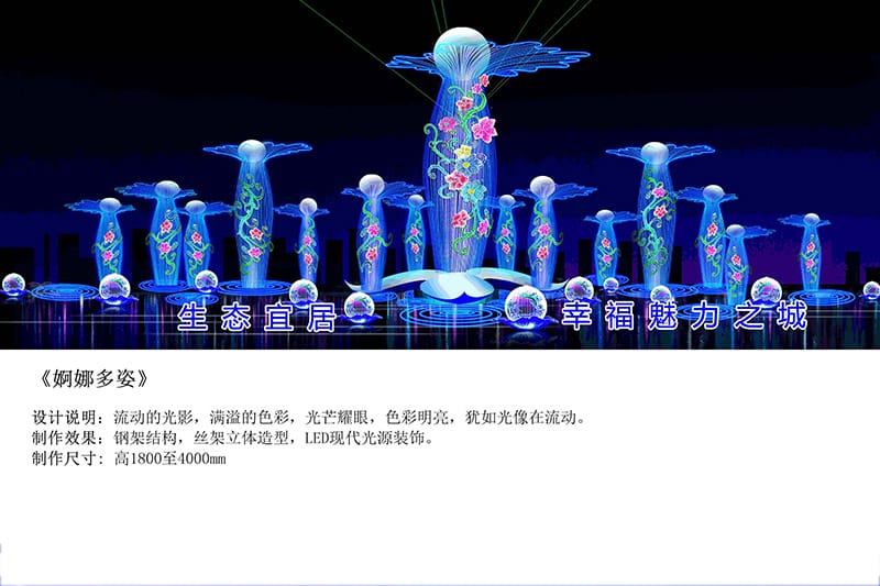 本公司设计、制作、装置的节庆景观项目众多,,,,,,可是公司始终本着“开拓立异,,,,,,追求完善”的设计理念,,,,,,“以质量求生涯,,,,,,以信誉求生长”的谋划态度,,,,,,依附超前的设计构想、合理的预算报价、优异的制作工艺,,,,,,优质的效劳,,,,,,深受宽大客户的青睐!接待各界朋侪和我们建设并生长营业关系,,,,,,本公司接待您的到来!